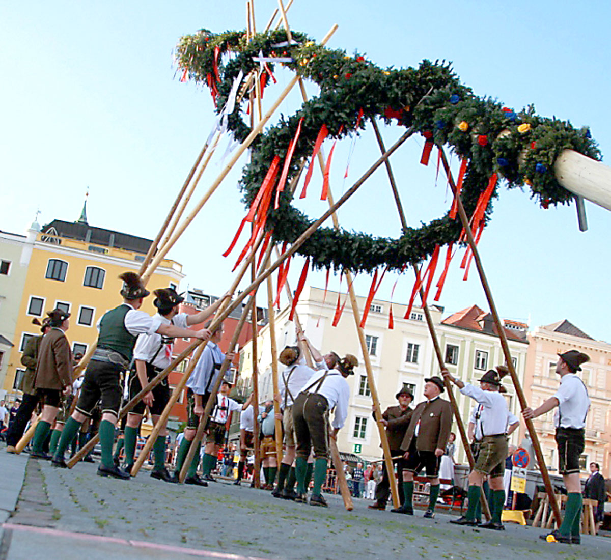 Bereits 1924 stellte nun der Trachtenverein, gemeinsam mit dem Verein "Heimatschutz", auf dem Stadtplatz in Gmunden im Salzkammergut einen Maibaum. Interessant dabei ist, dass dieser Baum am 1. Mai um 6:00 Uhr früh aufgestellt wurde.